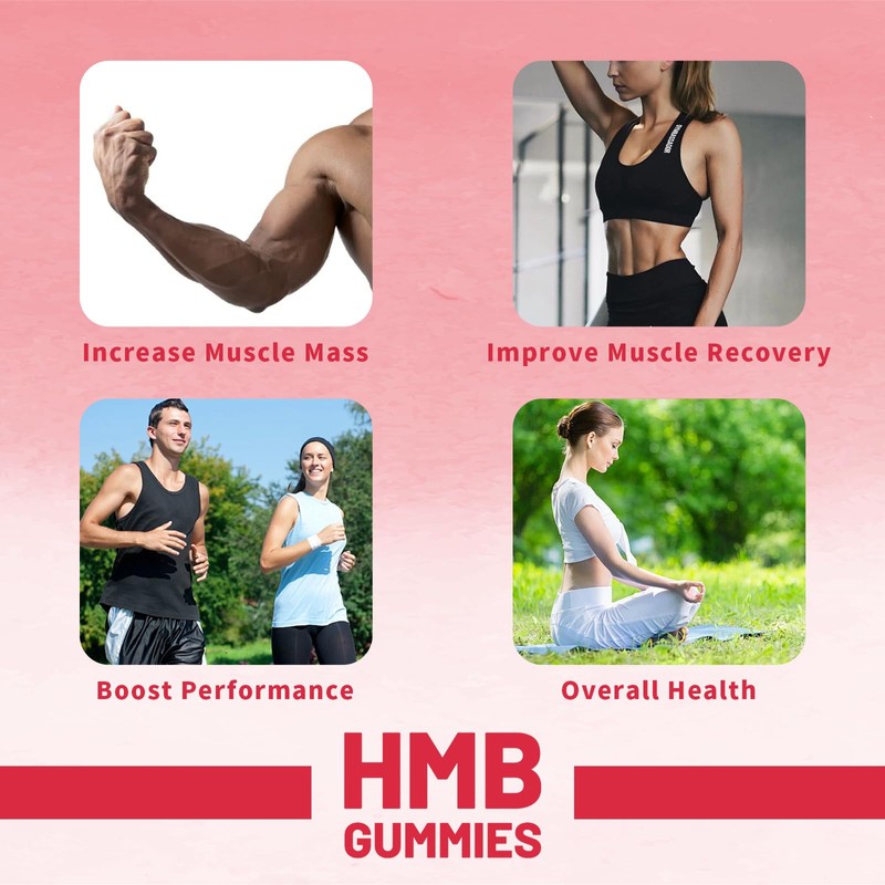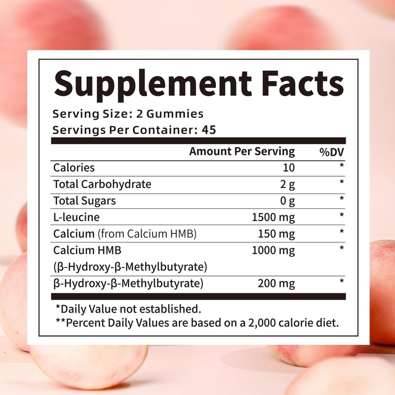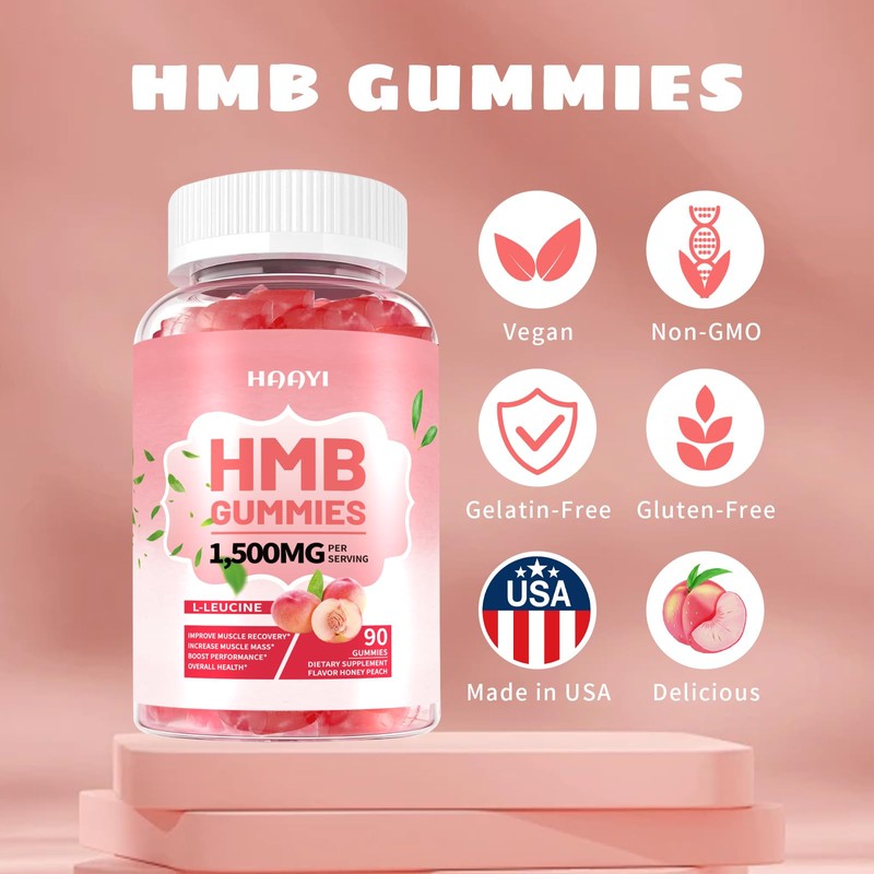 HHAYI HMB Supplements for Men 1500mg and Leucine Amino Acid for Muscle Recovery Increase Muscle Mass Improve Endurance Non-GMO Sugar Free Peach 90 Gummies