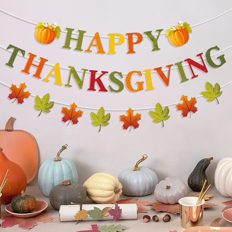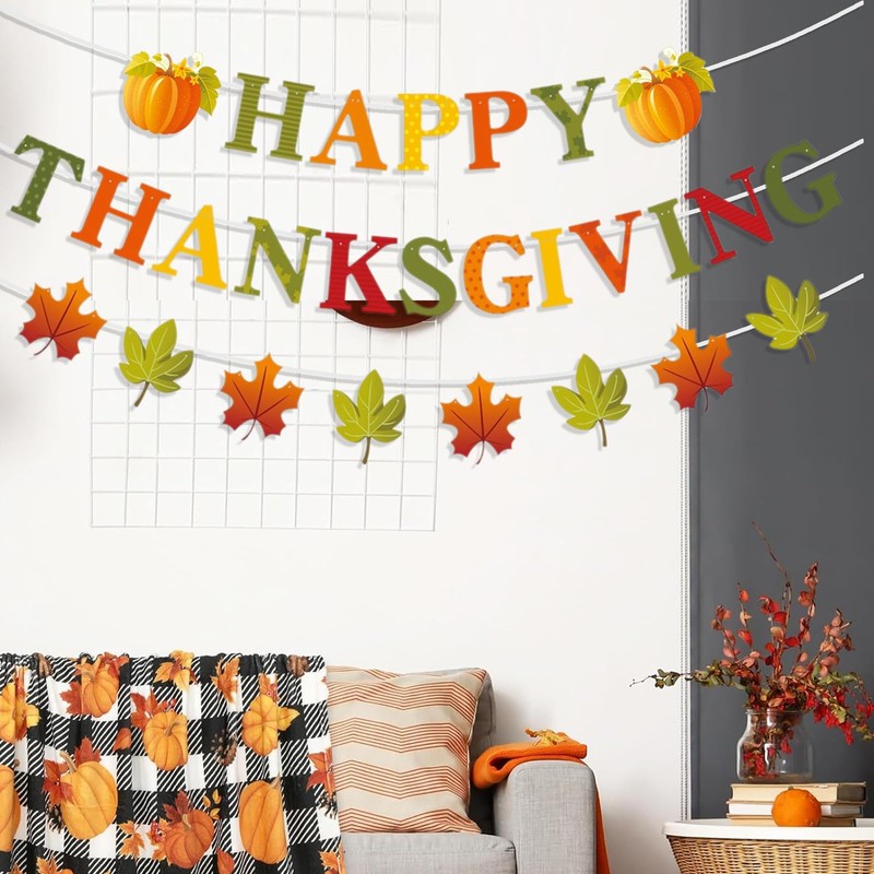 - What You Get :This set includes 1 colorful “Happy Birthday Fall” banner and 1 maple leaves & pumpkin pattern banner. The set comes with three separate strands: one spelling “HAPPY,” one spelling “THANKSGIVING,” and one garland banner with colorful fall-themed patterns. Perfect for autumn birthday parties, Thanksgiving gatherings, or any fall celebration.