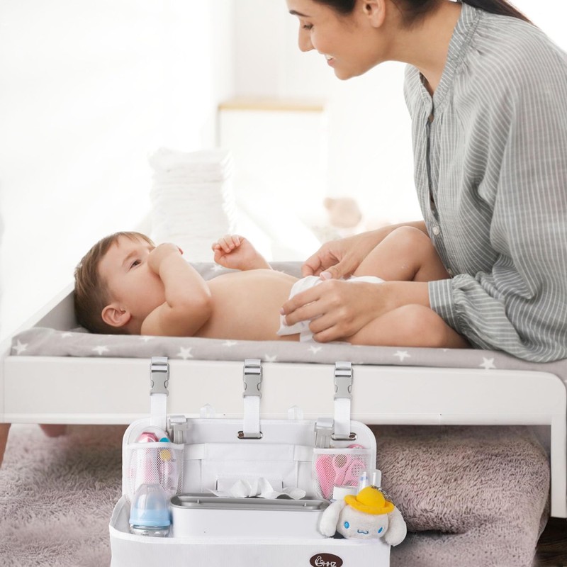 - 🎁 Great Baby Shower Gift: Are you searching for the perfect diaper organizer? Look no further! The HHZ large hanging diaper organizer is the ideal baby shower gift for new parents. This durable, waterproof, and easy-to-clean diaper bag organizer does not contain BPA, white color is perfectly suited for babies and can be easily integrated into any baby room decor. Don't hesitate to choose us.