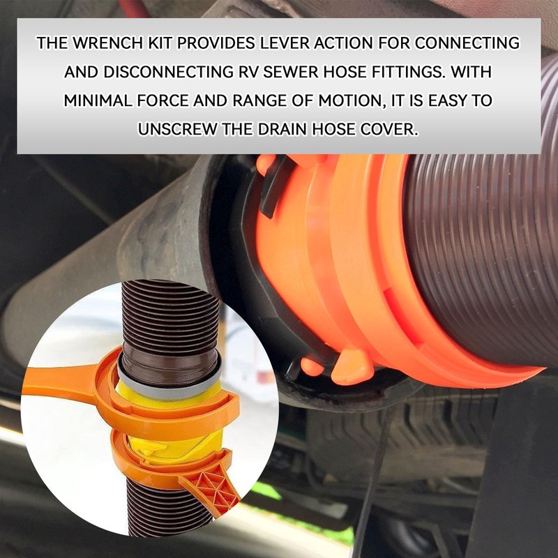 - Essential for Travel: The RV sewer hose wrench is designed for standard 3-inch and 4-inch RV sewer connections and has grooves for threads, bayonet and quick-connect systems. Mainly used in RVs and campers