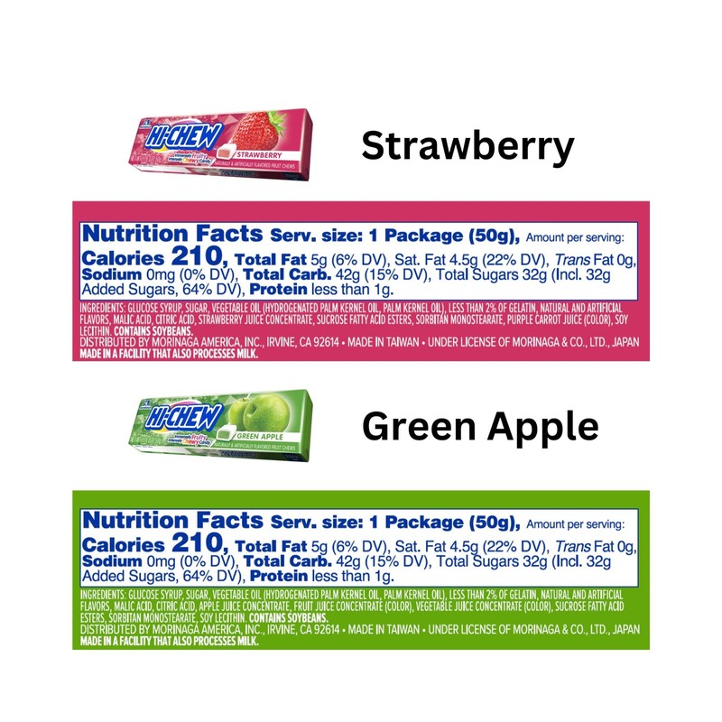 - Flavor Variety: Can't choose just one. Enjoy a mix of on-the-go HI-CHEW stick flavors, including fan favorites-Strawberry, Green Apple, Grape, Mango, and Kiwi.