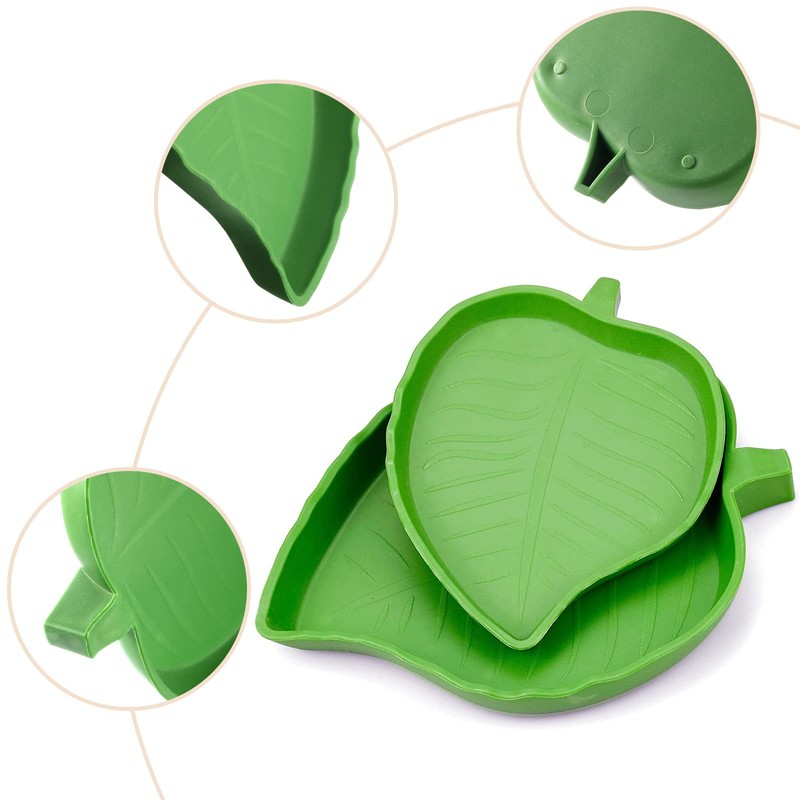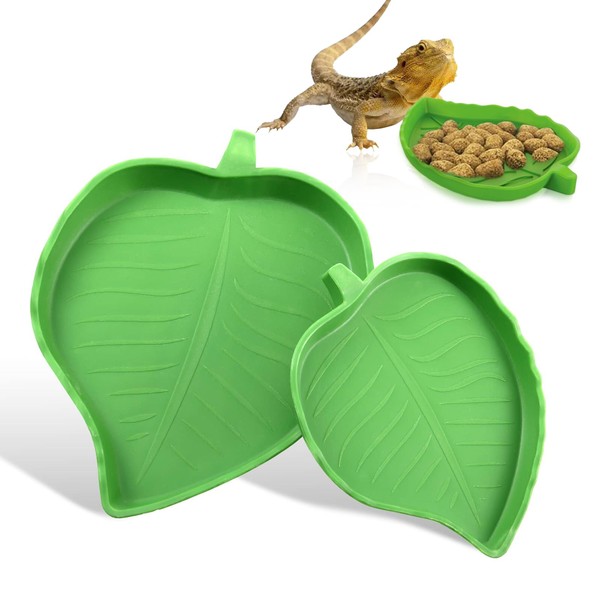 - ✅ 2 DIFFERENT SIZE : 2 pieces leaf reptile feeding and water bowl in small and large size, the smaller leaf reptile bowl measures 4.72 x 3.74 x 0.47 inch/ 12 x 9.5 x 1.2 cm, and the larger one comes in 6.06 x 4.88 x 0.59 inch/ 15.4 x 12.4 x 1.5 cm. you can choose the size according to your pet's needs.