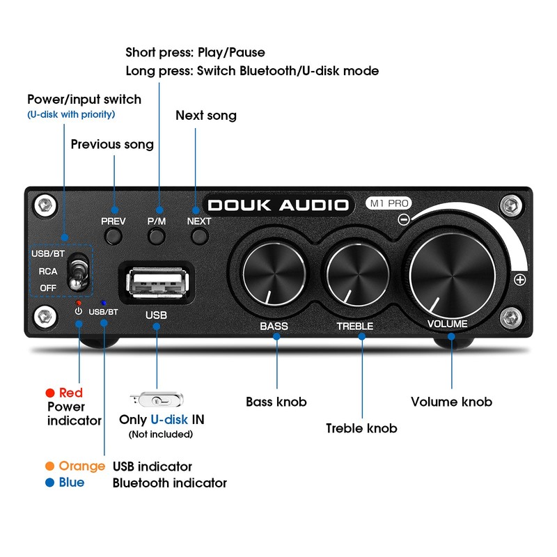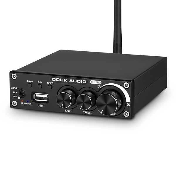 Douk Audio M1 PRO 320W Bluetooth Power Amplifier, 2 Channel Audio Amp, Wireless Receiver, for Home Stereo Speakers/Active Subwoofer, with Treble & Bass Control/U-Disk Music Player