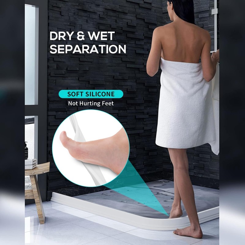 • 【Safe and Tidy】The shower water dam is very easy to clean and care,just wipe with a wet towel to make it look as good as new. The silicone has a soft texture to prevent falls without hurting your feet. Ideal for curbless showers and other areas where water needs to be contained.