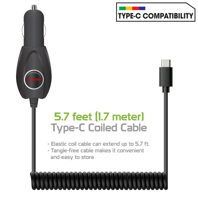 This slim new Extendable Coiled Long Reach version includes USB Type-C Advanced Car Charger with Fast 15 Watt 3 Amp Charge Technology power is faster than ever, thanks High Amp Technology.