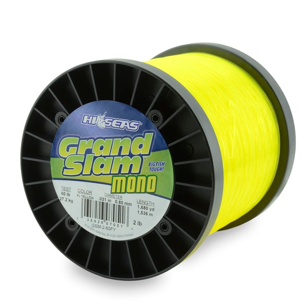 Hi-Seas Grand Slam Monofilament Line, 60 lb / 27.2 kg Test, .031 in / 0.80 mm Dia, Fluorescent Yellow, 1680 yd / 1536 m