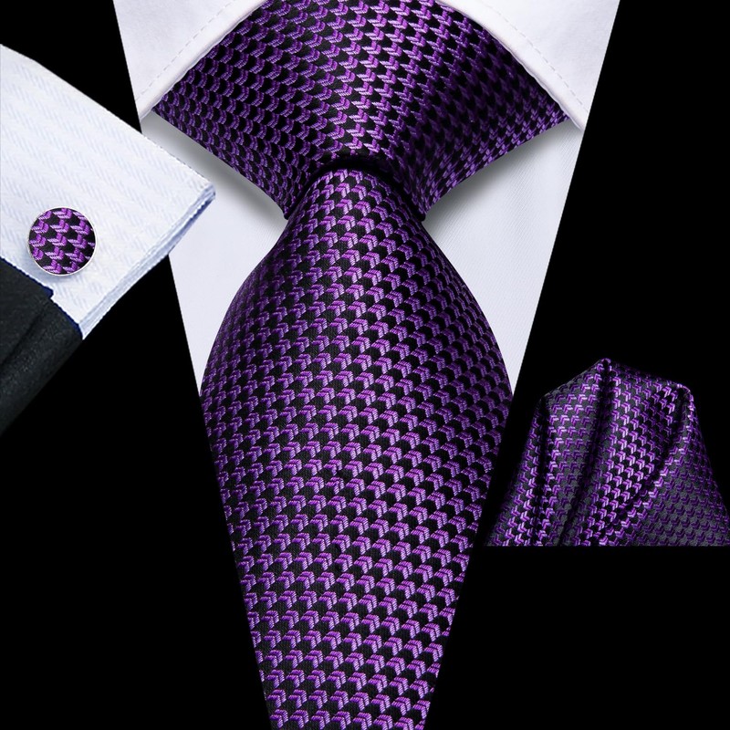 Hi-Tie 63'' Purple Ties for Men Silk Extra Long Men's Ties Set XL Dress Necktie and Pocket Square Cufflinks for Wedding