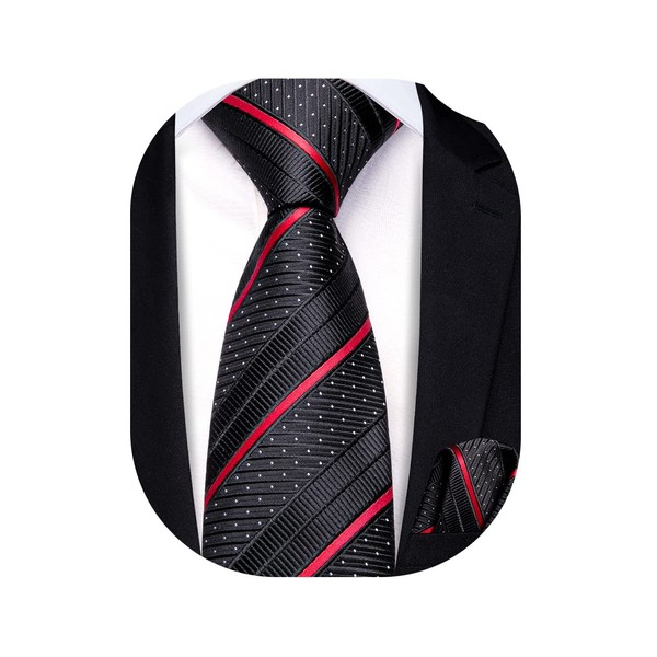 Hi-Tie Boys Ties Self Tie Silk Black and Red Striped Kids Necktie and Pocket Square Set for Age 8-14 Wedding School