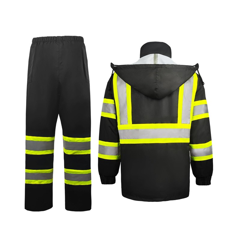 - 【HIGH VISIBILITY AND REFLECTIVITY】 The safety Rain Jacket and Pants has 2 vertical and 1 horizontal 2-inche wide reflective strips with 3 inch contrast fabric to cover the waist, chest, shoulders, back respectively, and two 2-inch wide reflective stripes with 3 inch contrast fabric on each sleeve and additional 2 strips on each leg, which can provide 360 ° protection, improve the visibility of the jacket, make you stand out easily, and maximize the visibility and safety of the wearer.