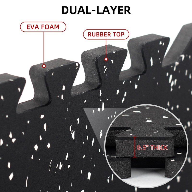 - Double Layer Design: Rubber top layer EVA foam gym exercise mats, non-slip and durable surface, anti-abrasion