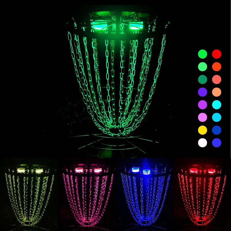 HIAARO LED Disc Golf Baskets Light 2 Pack with Magnetic Attachment, RF Remote Control, Waterproof, Multi Colored Adjustment Modes for Disc Golf Night Practice
