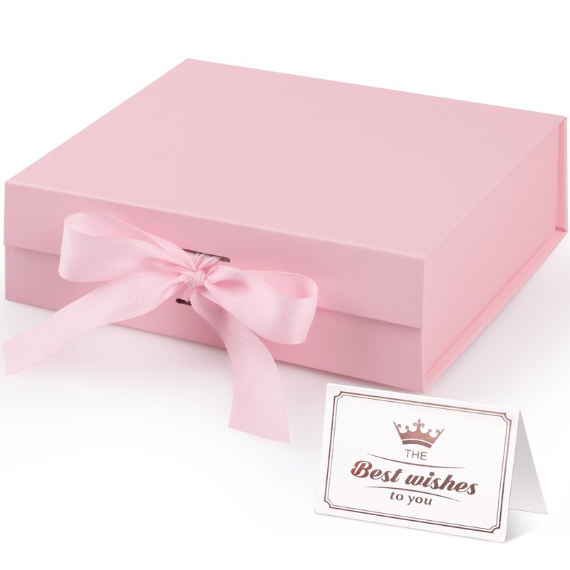 Hianjoo 10.2x7.5x3.1" Gift Box, Collapsible Gift Boxes with Ribbon and Magnetic Closure, Gift Boxes with Lids for Presents Packaging for Groomsmen Proposal Box, Halloween,Christmas, Birthday (Pink)