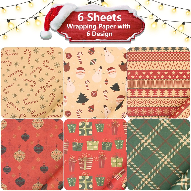- ✨ Ideal Size ✨ 6 sheets gift wrapping paper in different pattern. Each sheet of packing paper measures 70*50 cm/27.56*19.69 inches enough to meet your gift packaging needs.