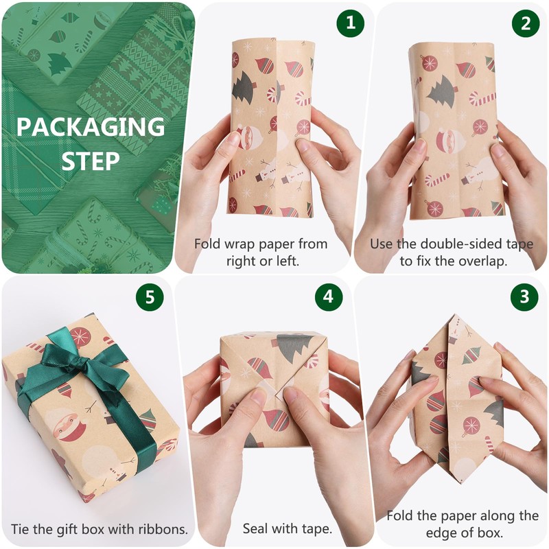 - 🎄 Environmentally Materials🎄 Wrapping papers are made of premium Craft paper material, durable and recyclable, non-toxic and tasteless, which is truly a green choice.
