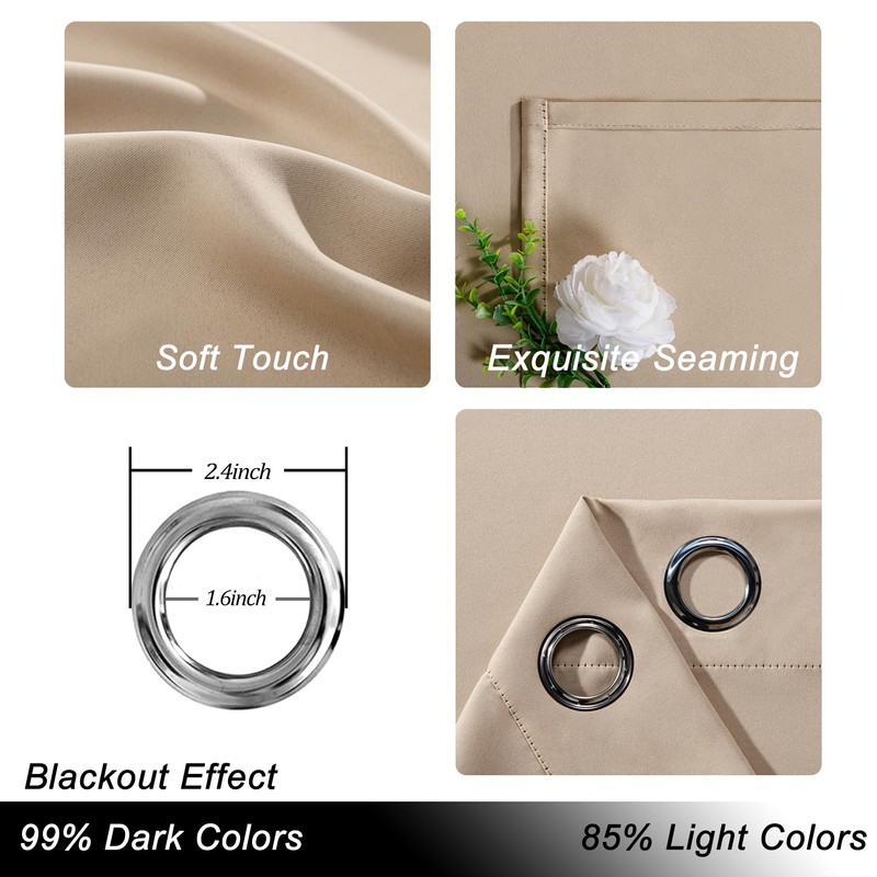 Hiasan Room Divider Blackout Curtains,Extra Wide 100 x 108 Inches Long Energy Smart&Noise Reducing Grommet Thermal Insulated Curtain Drapes for Patio Door,1 Panel Sewn with Tiebacks,Biscotti Beige
