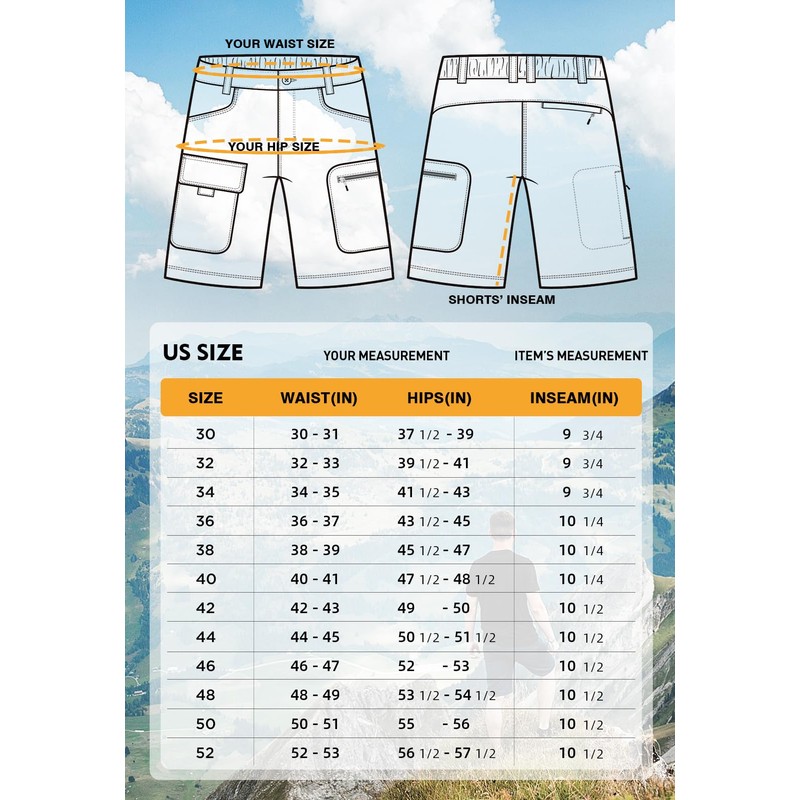 - Comfortable & Breathable & Quick Dry: Our hiking shorts men are made with highly breathable, moisture-wicking fabric helps draw sweat away from skin. With a quick-drying time, you'll be ready for your next adventure in no time