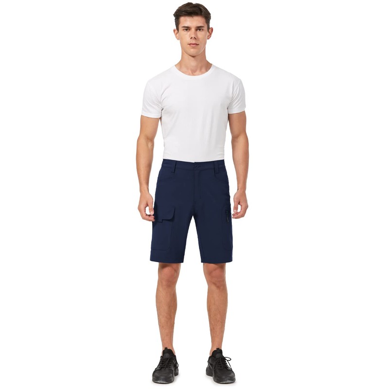 Hiauspor Men's Hiking Cargo Shorts 9"/10" Quick Dry Lightweight Waterproof for Golf Tactical Fishing Casual with 6 Pockets (Navy, 34)