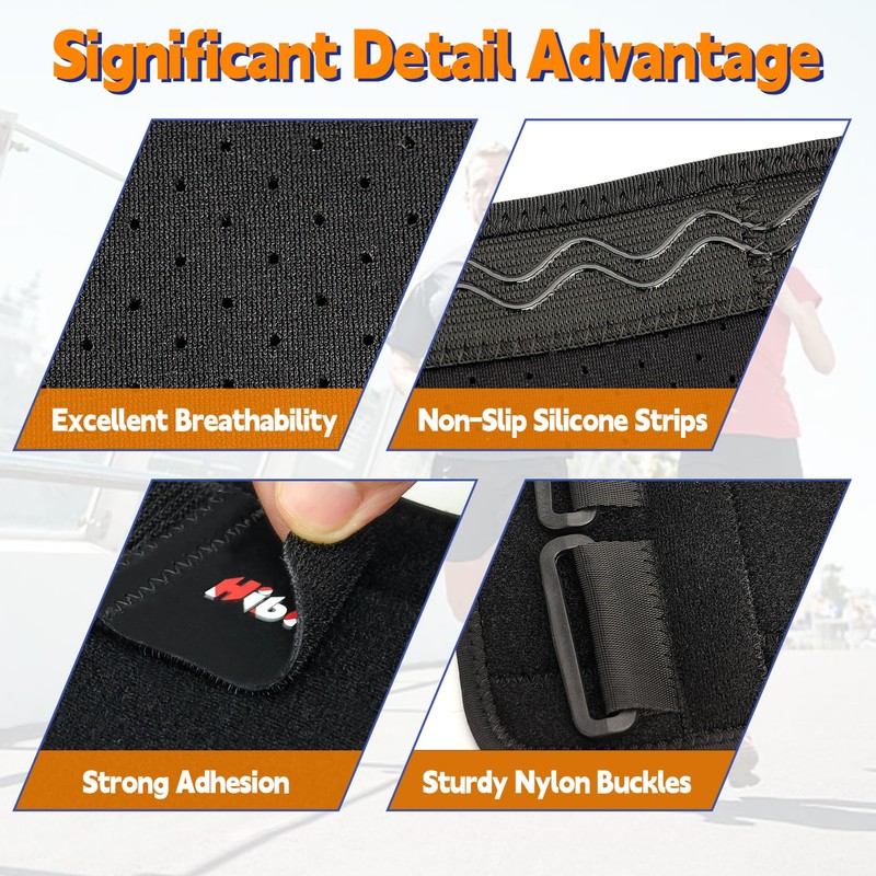 - ADJUSTABLE PRESSURE STRAPS: Our thigh support brace features three adjustable elastic pressure bands, allowing you to customize the compression level for optimal support. The widened nylon buckles ensure maximum stability and adhesion. The unique wave-patterned anti-slip silicone strips on on the inside ends ensure that the thigh compression wrap stays securely in place. Enhance your performance and reduce the risk of injury with Hiball thigh support brace