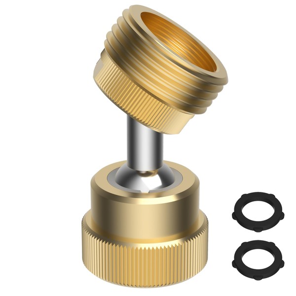 Hibbent 3/4" GHT Garden Hose Adapter with Dual Swivel, Solid Brass Flexible H...