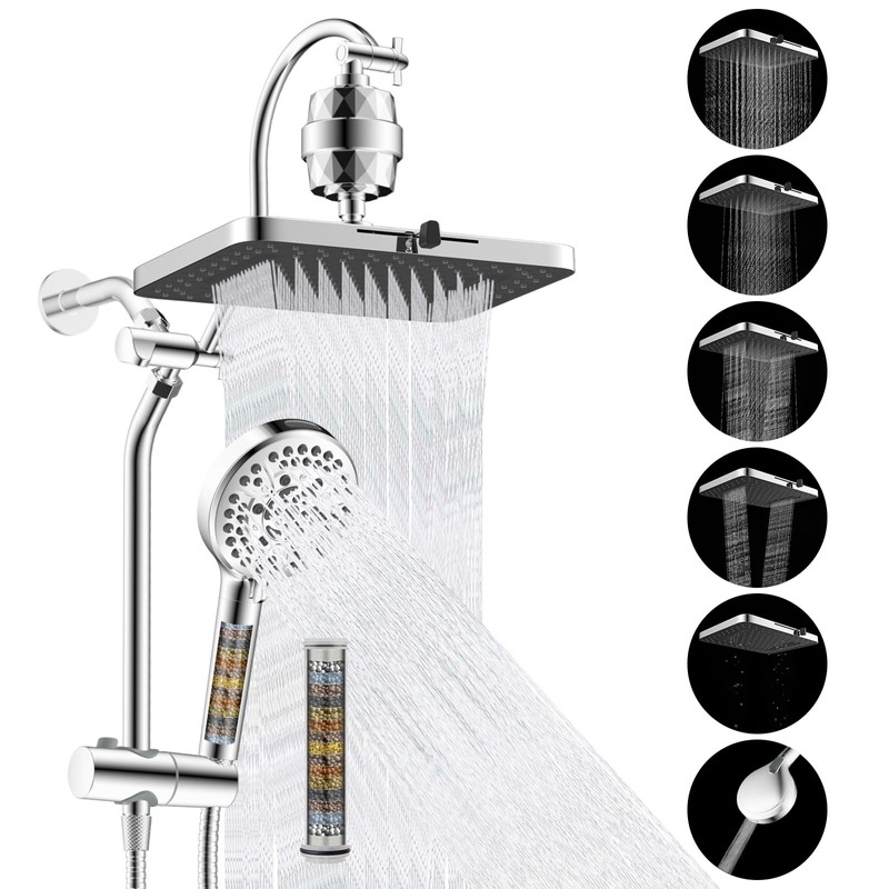 - [Advanced 20-Stage Filtration System] This filtered showerhead combo features a 20 - stage filtration system that ensures high water quality. The Filtration Stage removes sediment, rust, chlorine, and other impurities, while the Soften Stage enriches the water with oxygen to revitalize skin and hair while promoting balanced hydration. The Rejuvenation Stage infuses the water with essential minerals for a refreshing and rejuvenating shower experience. It effectively addresses odors, balances pH levels, and nourishes your skin, nails, and hair with healthy minerals. After each shower, you will have softer, shinier hair and smoother skin. Farewell to dry, tangled hair and irritated skin
