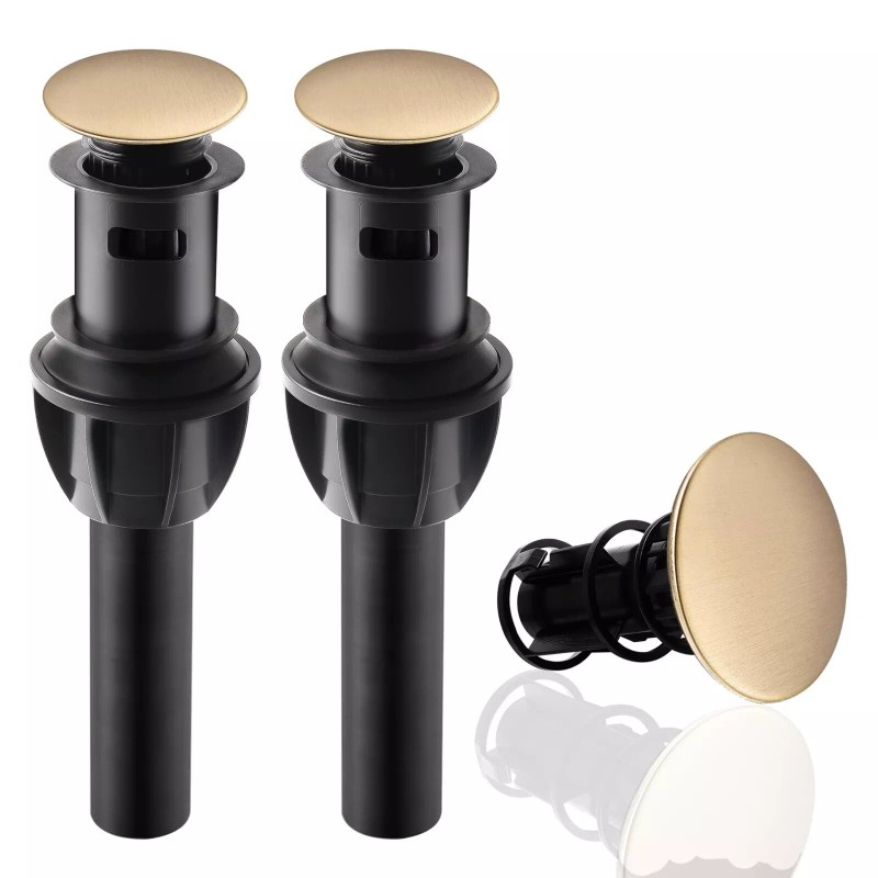 Hibbent Push and Seal Pop Up Drain Stopper with Overflow for Bathroom Sink Faucet 2 Pack - Brushed Gold