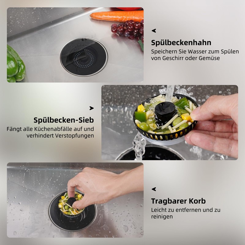 - Anti-clog basket: Our high-temperature resistant stainless steel basket catches food leftovers, protects your pipes from blockages and makes cleaning a breeze. It prevents rust due to water exposure and corrosion caused by acid. It can withstand anything you throw in the sink.