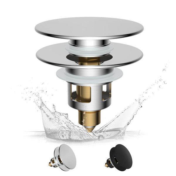 Hibbent Universal Sink Plug (25-46 mm), Elegant Brass Spring Core Pressure Valve, Pop-Up Drain Strainer Plug for Sink, Replacement for Bathtub and Kitchen Sink Plugs, Chrome