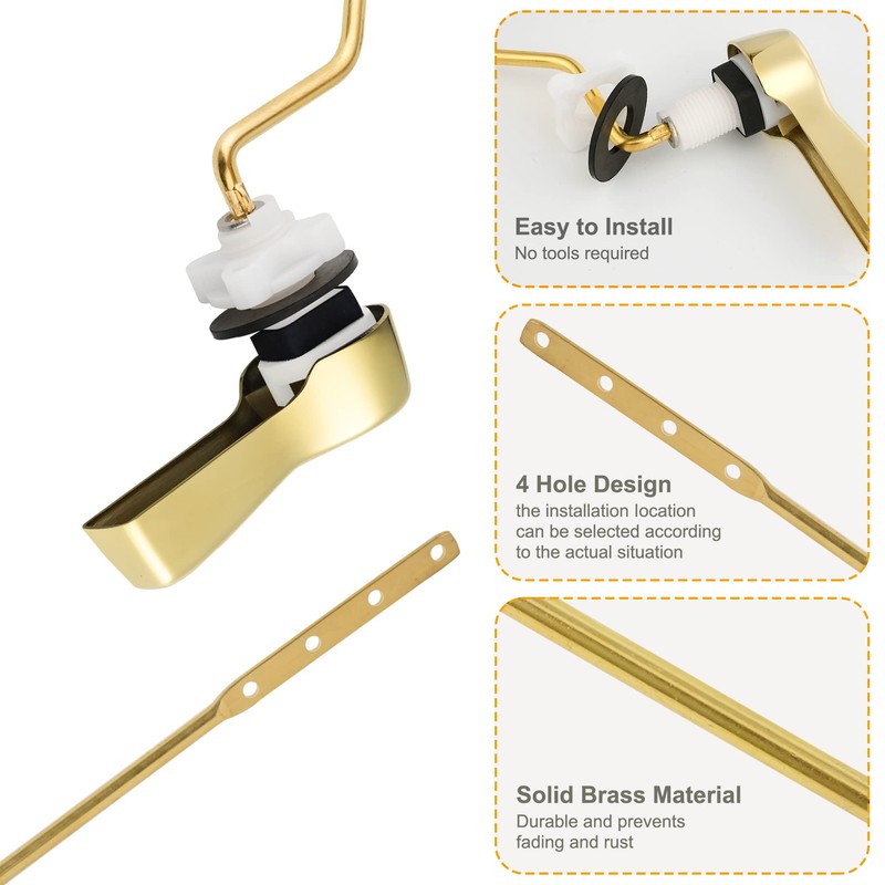 - Universal Angle/ Side Mount Brass Toilet Tank Lever: This Angle/ Side Mount Trip toilet tank lever handle is designed to fit most standard Angle mount toilets. Three holes at the end of the lever, which make it flexible to adjust the length according your toilet tank. Note that Angle-mount toilet handles type is fit for most toilet tank, but does not mean that it will fit for any front-mount or other side-mount handle. Make sure to check the lever kind before placing the order.