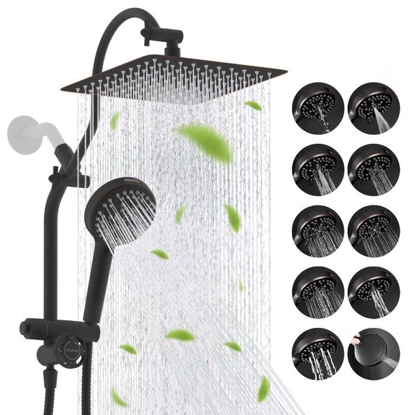 Hibbent Upgraded All Metal 10"Rainfall Showerhead Combo, High Pressure Shower Head with 10-Spray Mode Handheld, Innovative 4-way Diverter with Pause Mode, 71'' Hose and Holder, Oil Rubbed Bronze