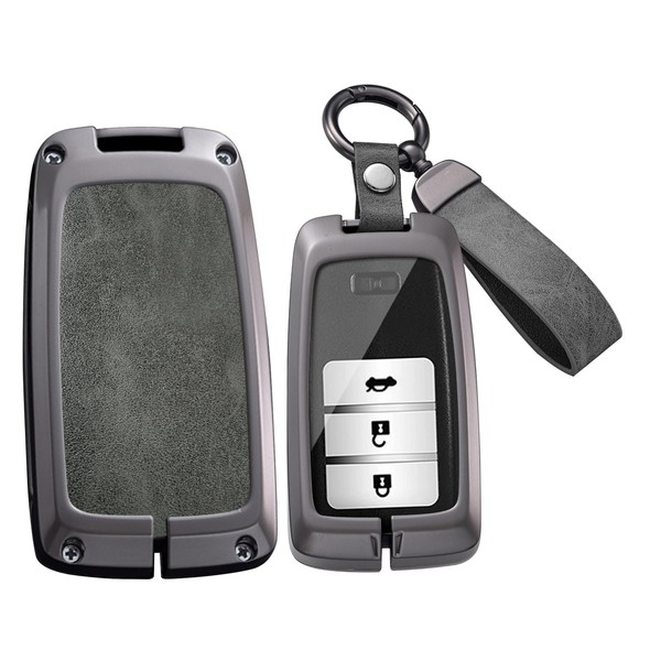 HIBEYO 2/3/4 Button Key Fob Cover Compatible with Honda Acura RLX MDX CDX TLX-L NSX RDX Accessories Alloy Leather Key Shell Smart Key Case with Keychains-Long Keychian Gray