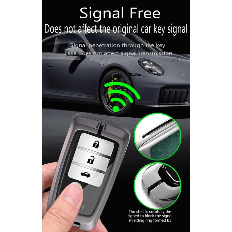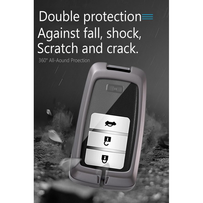 - 【Material & Design】:The smart car key fob for made of high quality Zinc alloy with leather;Transparent silicone button, soft and comfortable;The luster of the metal with the softness of the leather, more fashionable and beautiful;Block design and screw two layers of fixed protection