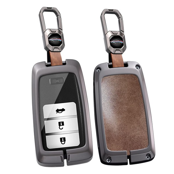 HIBEYO 2/3/4 Button Key Fob Cover Compatible with Honda Acura RLX MDX CDX TLX-L NSX RDX Accessories Alloy Leather Key Shell Smart Key Case with Keychains-Short Keychian Brown