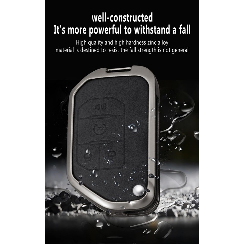 • 【Material & Design】:The smart car key fob for made of high quality Zinc alloy with leather , fashionable and high-end .Block design and screw two layers of fixed protection