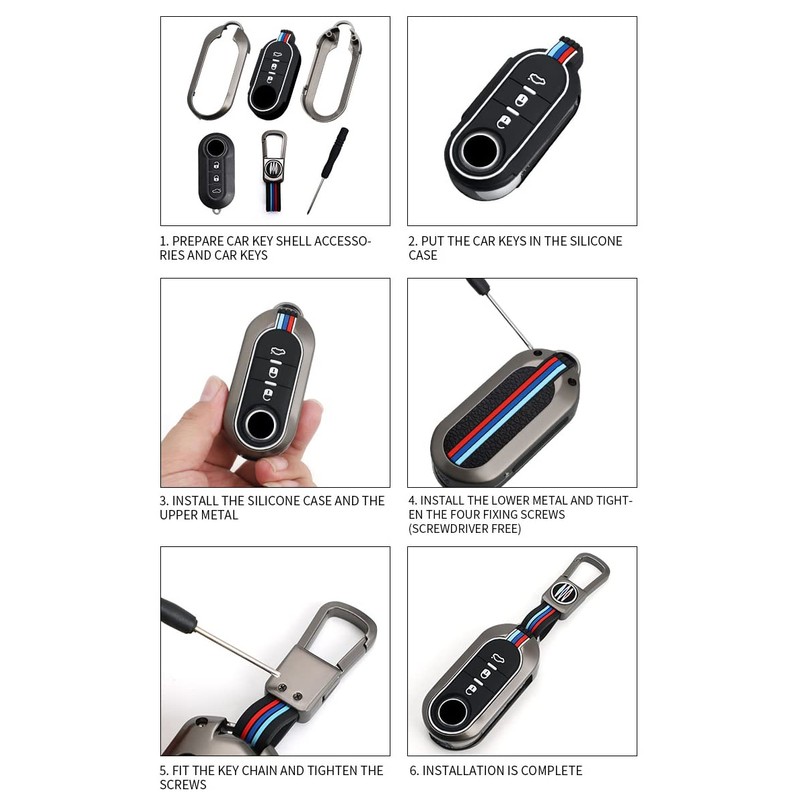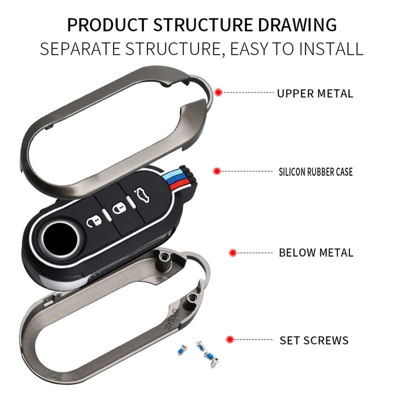 The car key cover consists of the protective cover key protection case made of zinc alloy, equipped with a fashionable key ring, innovative design, offer comprehensive protection for your keys.