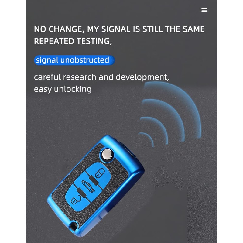 HIBEYO Flip Key Car Key Case Fits Peugeot 207 407 308 607 Key Case Leather Texture Protective Cover for Citroen C1 Picasso Berlingo C-Crosser Key Box 3-Button Leather Blue