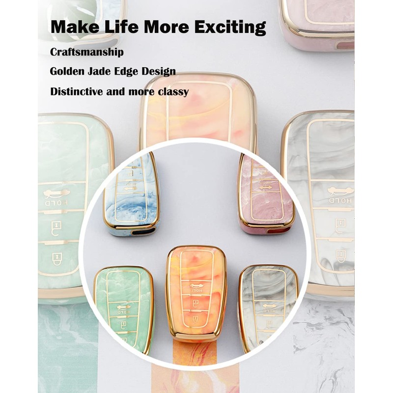 • 【Material & Design】:The smart car key fob replacement shell for Toyota Camry made of high quality soft TPU material . Does not leave creases.According to original shape remote key design. The surface is painted with natural marble patterns, each key fob cover is unique,create a beautiful and stylish protective shell ,Metal key ring with diamond , adding a sense of luxury.