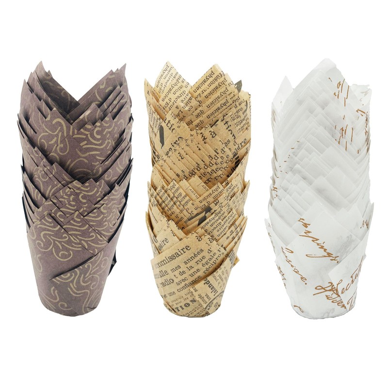 - Muffin paper cups legantes design – Our cake bowl has a unique tulip design, is simple and elegant and decorated with prints. This will make your dessert more eye-catching.
