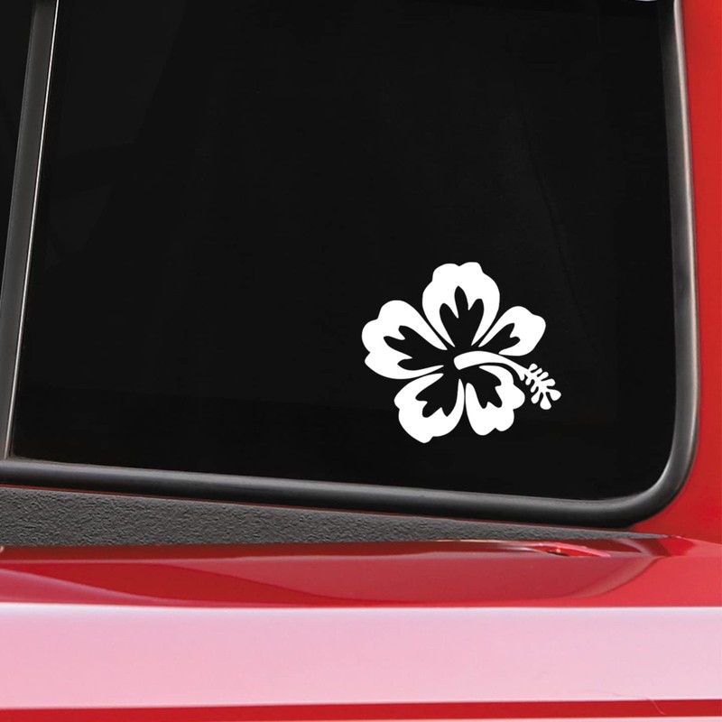 Hibiscus Flower Vinyl Decal Sticker for Cars Trucks Windows Bumpers Walls Laptops Skins - 5.5 Inches - White with No Background - KCD3387