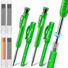 Hiboom 2 Pack Solid Carpenter Pencils with Pencil Cap, Built-in Sharpener, 24 Refills (Black, Red, Yellow), Long Nose Deep Hole Mechanical Marker Set, Scribe Tool for Construction Woodworking
