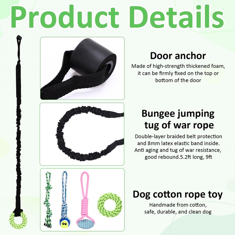 - Interactive Tug of War Dog Toy: this fun-filled bungee tug-of-war toy dogs can be easily fixed on a door, tree or railing for endless interactive fun; This toy keeps your dog busy and relieves boredom, releases excess energy, and is suitable for small to large dogs and aggressive chewing dogs to play outdoors or indoors