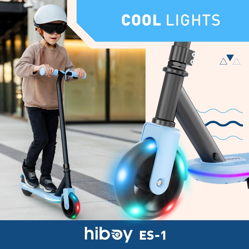 - Vibrant LED Light Show - The Hiboy ES1 electric scooter for kids ages 4-8 features dazzling multicolor wheel lights and deck lighting that create a fun, safe night-riding experience. Kids will love customizing their light displays while staying visible after dark.