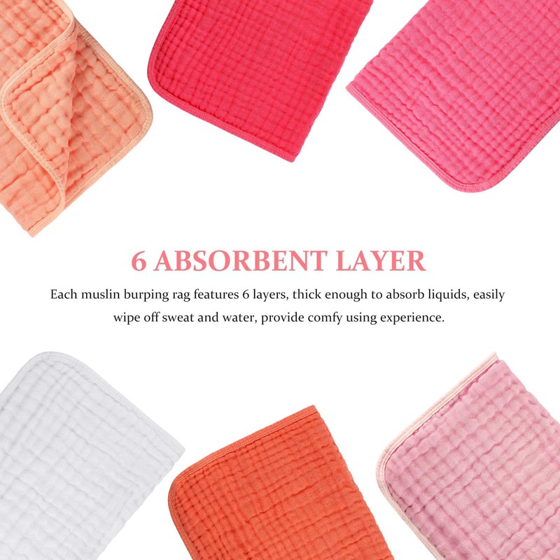 - 6 Absorbent layer: each muslin burping rag features 6 layers, thick enough to absorb liquids, easily wipe off sweat and water, provide comfy using experience