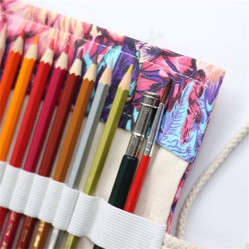 All pencil cases are made of high quality canvas material. Roll it up when not needed, saving space and more order. Made of durable and washable canvas, ideal for long-term use.