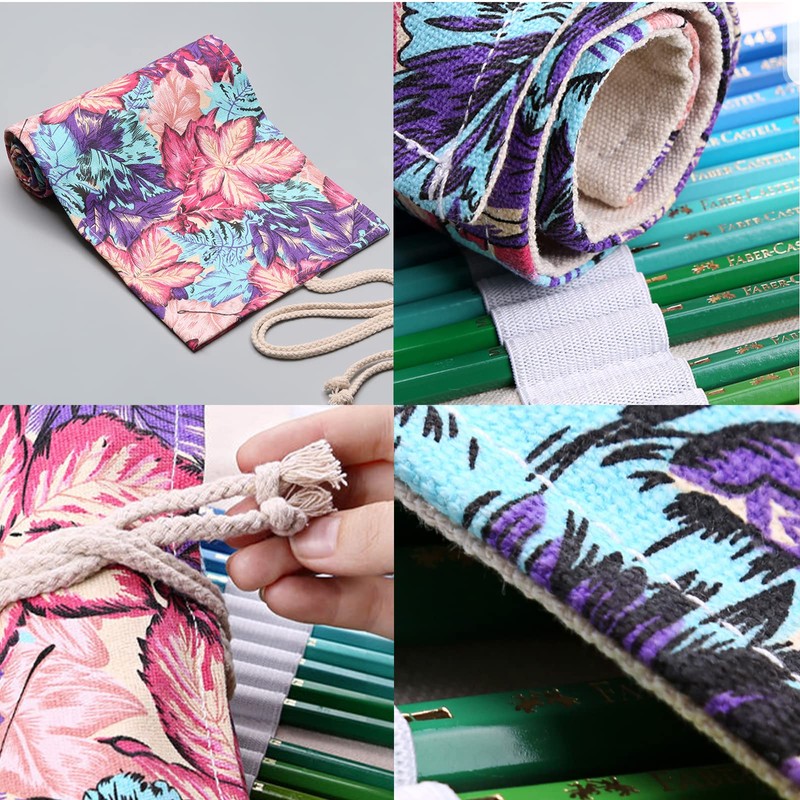 HICAS Pencil Case for Winding Canvas Pencil, Pencil Case 24/36/48/72 Holes for Colouring Pencils, Fabric Pencil Case for Sketching, Drawing, Writing, Maple leaves, casual