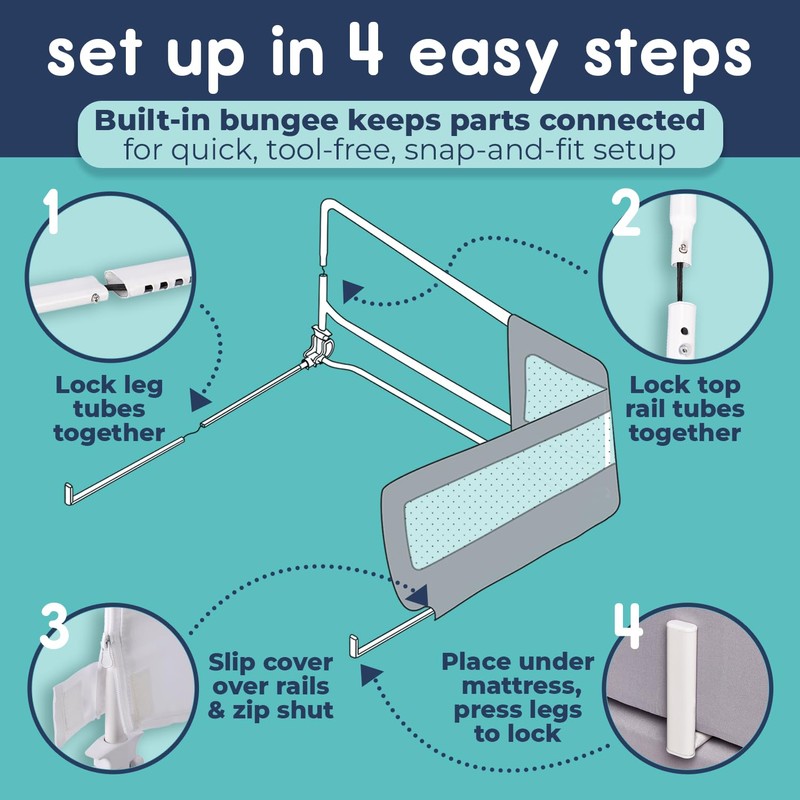 hiccapop 44" x 19" Bed Rail for Toddlers, Heavy-Duty Safety Bed Rail for Twin, Full, Queen Beds, Soft Mesh Cover & Swing-Down Design, Easy No-Tool Installation (White)