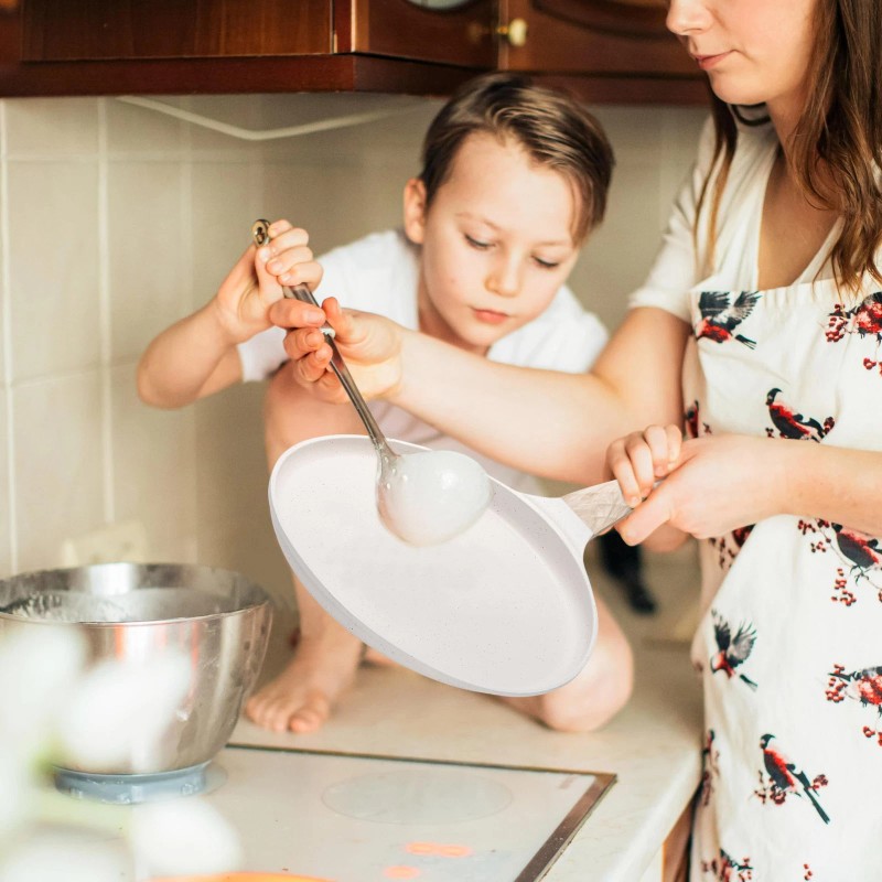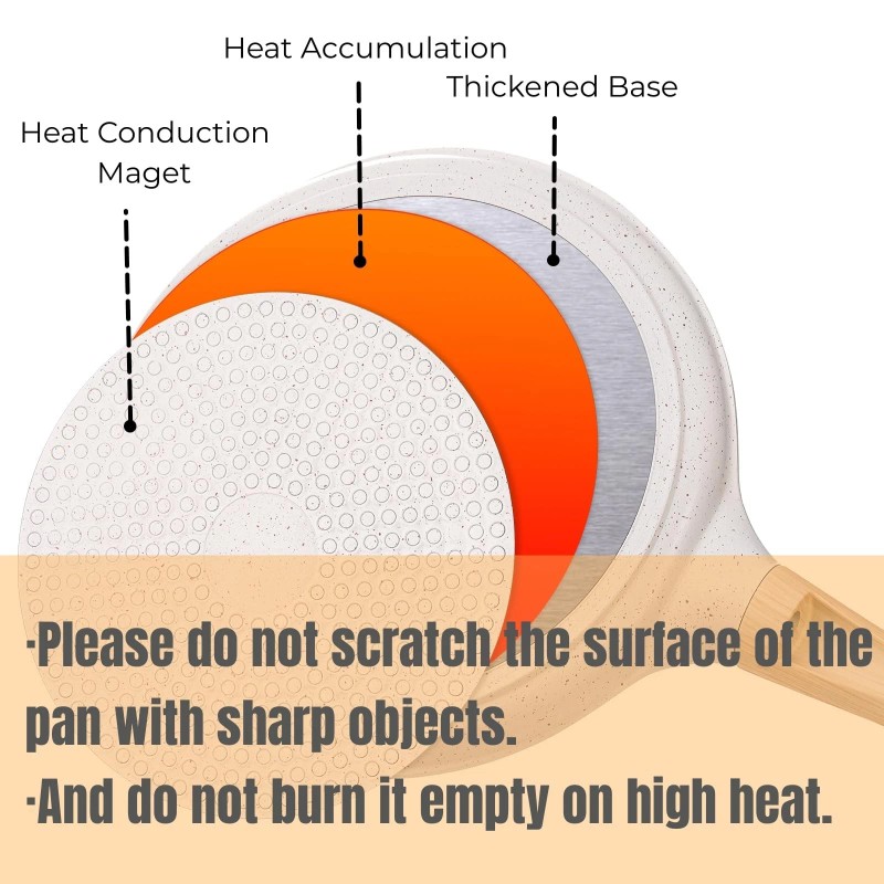 【Non-toxic Material】Crafted with premium stone and aluminum alloy materials, this pancake pan guarantees even heat distribution for perfect non-stick results every time. Say hello to healthy cooking with its safe and non-toxic coating. Please do not scratch the surface of the pan with sharp objects, and do not burn it empty on high heat.