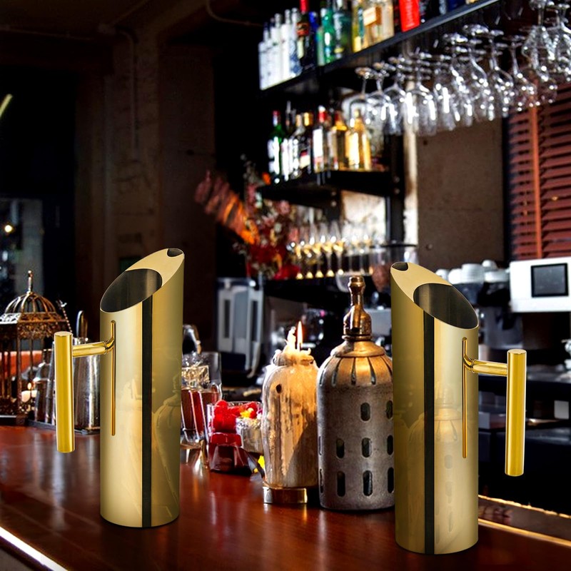 - 【Ice Guard Feature】 Say goodbye to watered-down drinks! Our gold metal pitcher comes with an innovative ice guard that prevents ice cubes from splashing into your glass while pouring. Enjoy refreshing beverages without compromising on taste.
