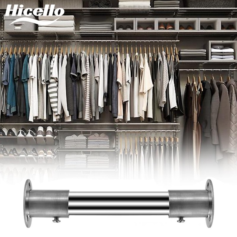 Hicello 2Pcs Stainless Steel Wardrobe Rail Rod Pole Socket End Support Bracket Flange-25mm