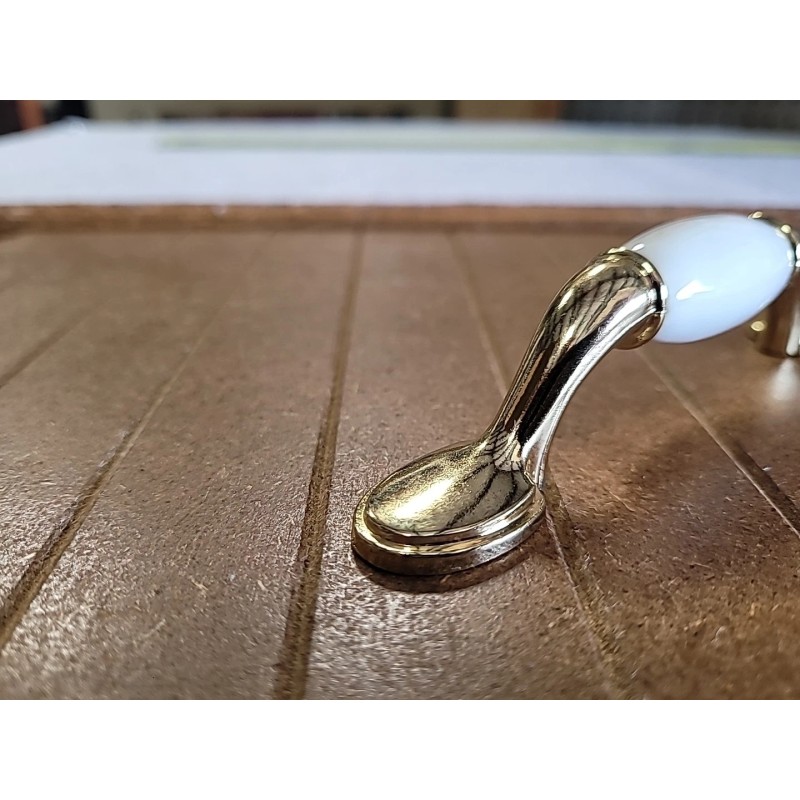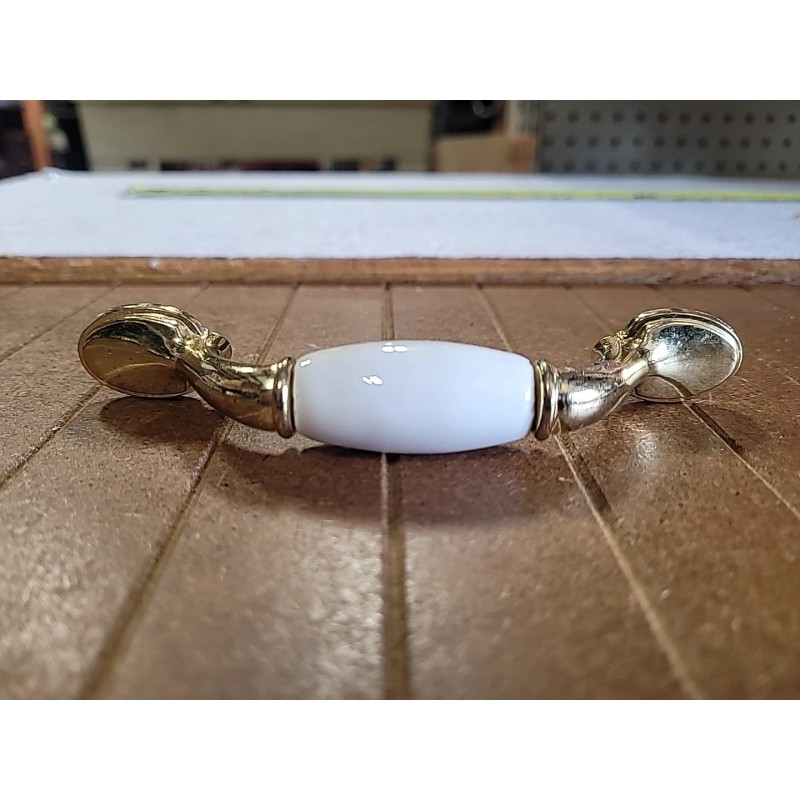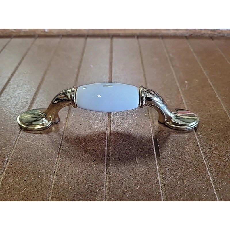 Hickory Tranquility Polished Brass Cabinet 3"cc Handle Pull white porcelain