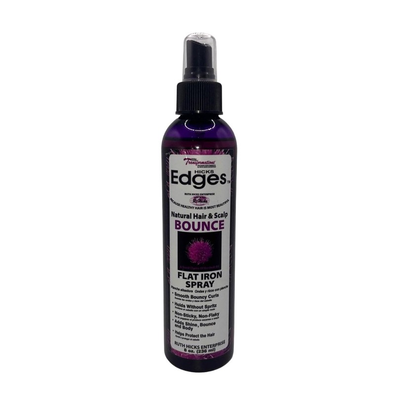 Hicks Edges Natural Hair and Scalp Bounce Flat Iron Spray, Smooth Bouncy Curls, Holds without Spritz with Heat Protection, Non-Sticky and Non Flaky, Adds Shine and Bounce, Help protect Hair